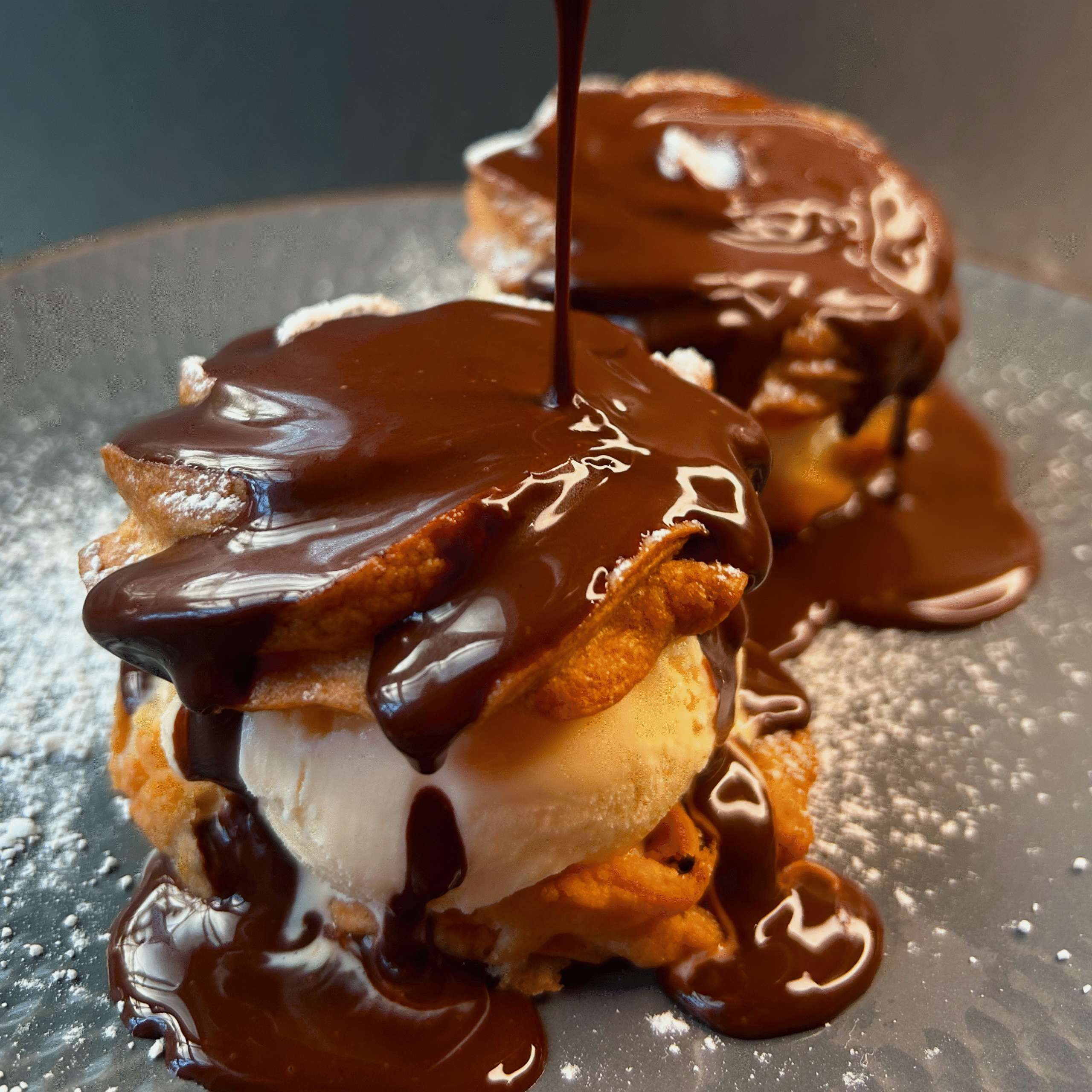 45złProfiterolki z lodami waniliowymi oblane ciepłą czekoladą